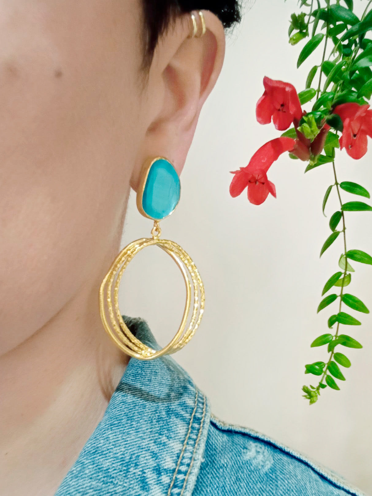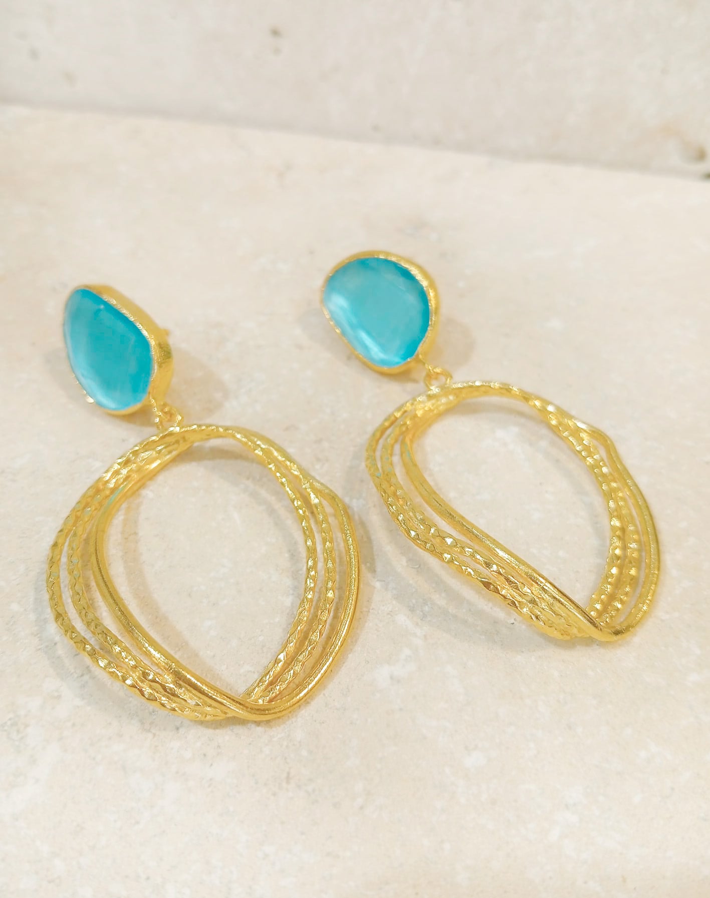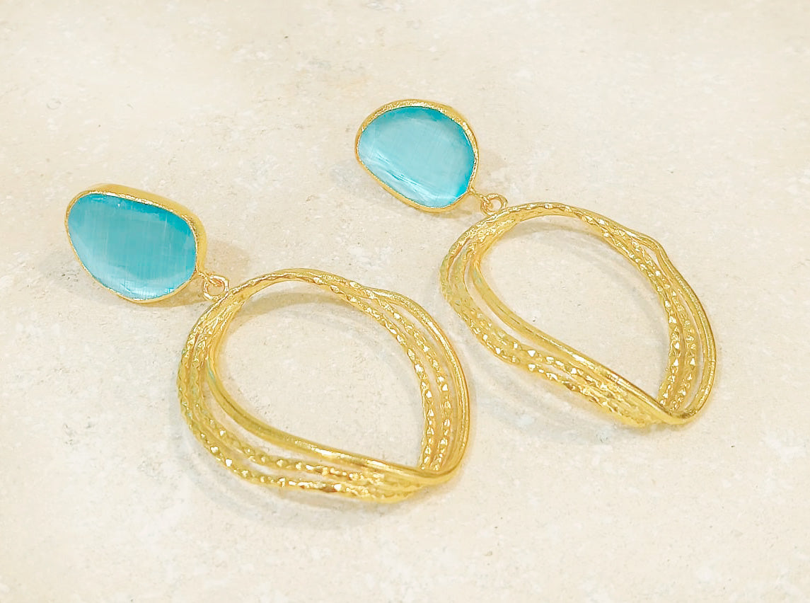 Boucles d'oreilles de fabrication artisanale, en laiton et plaqué or 24k