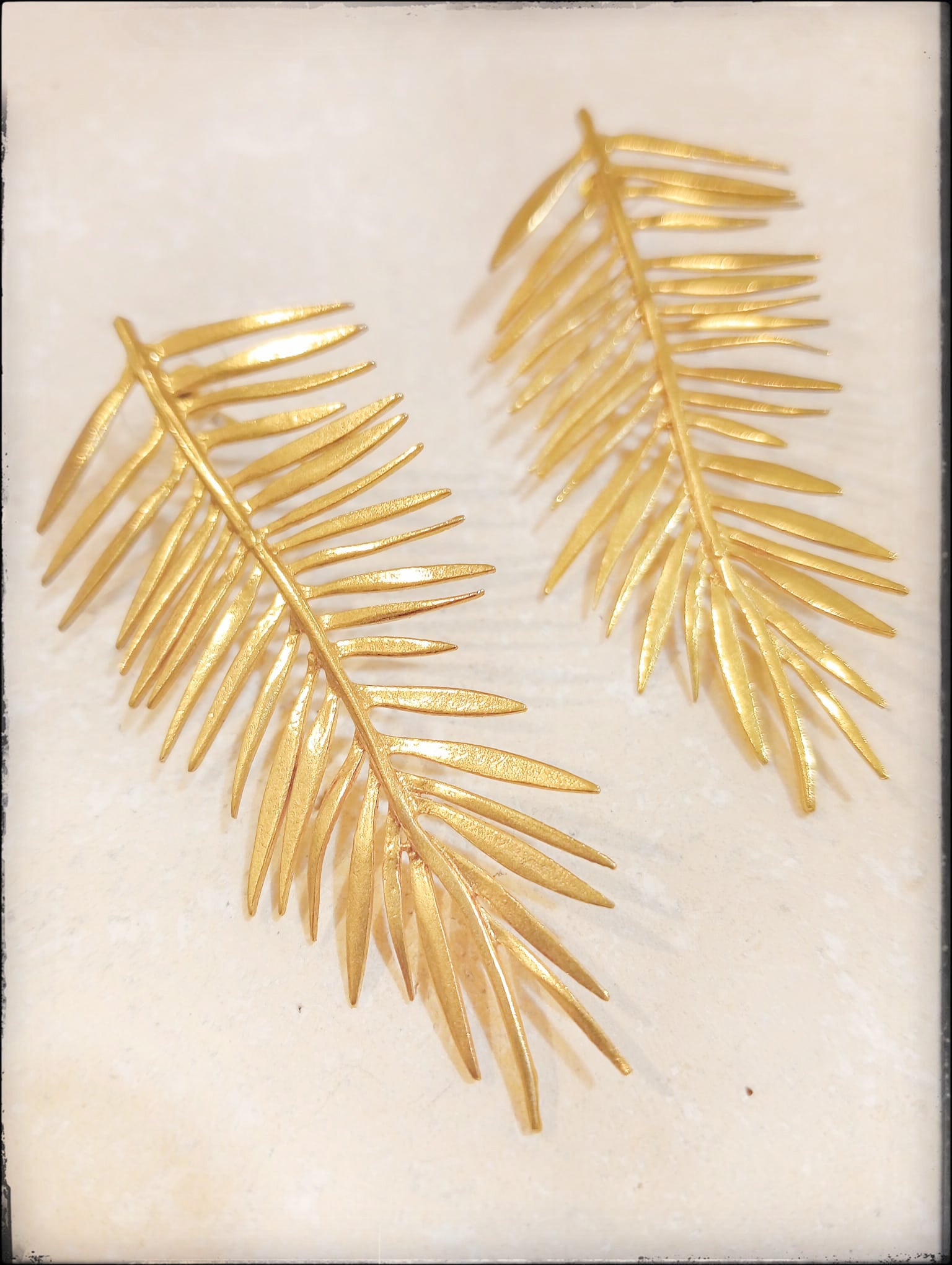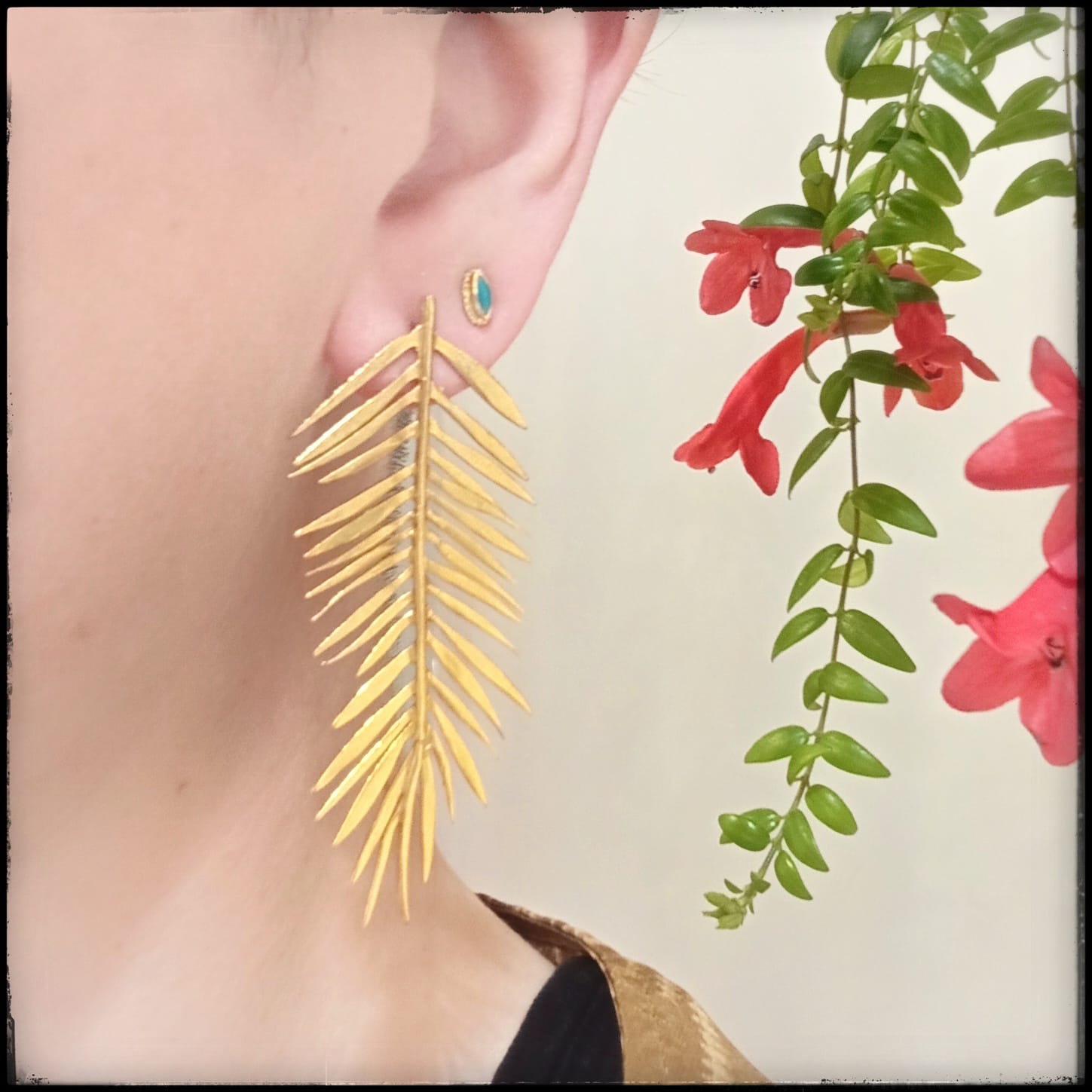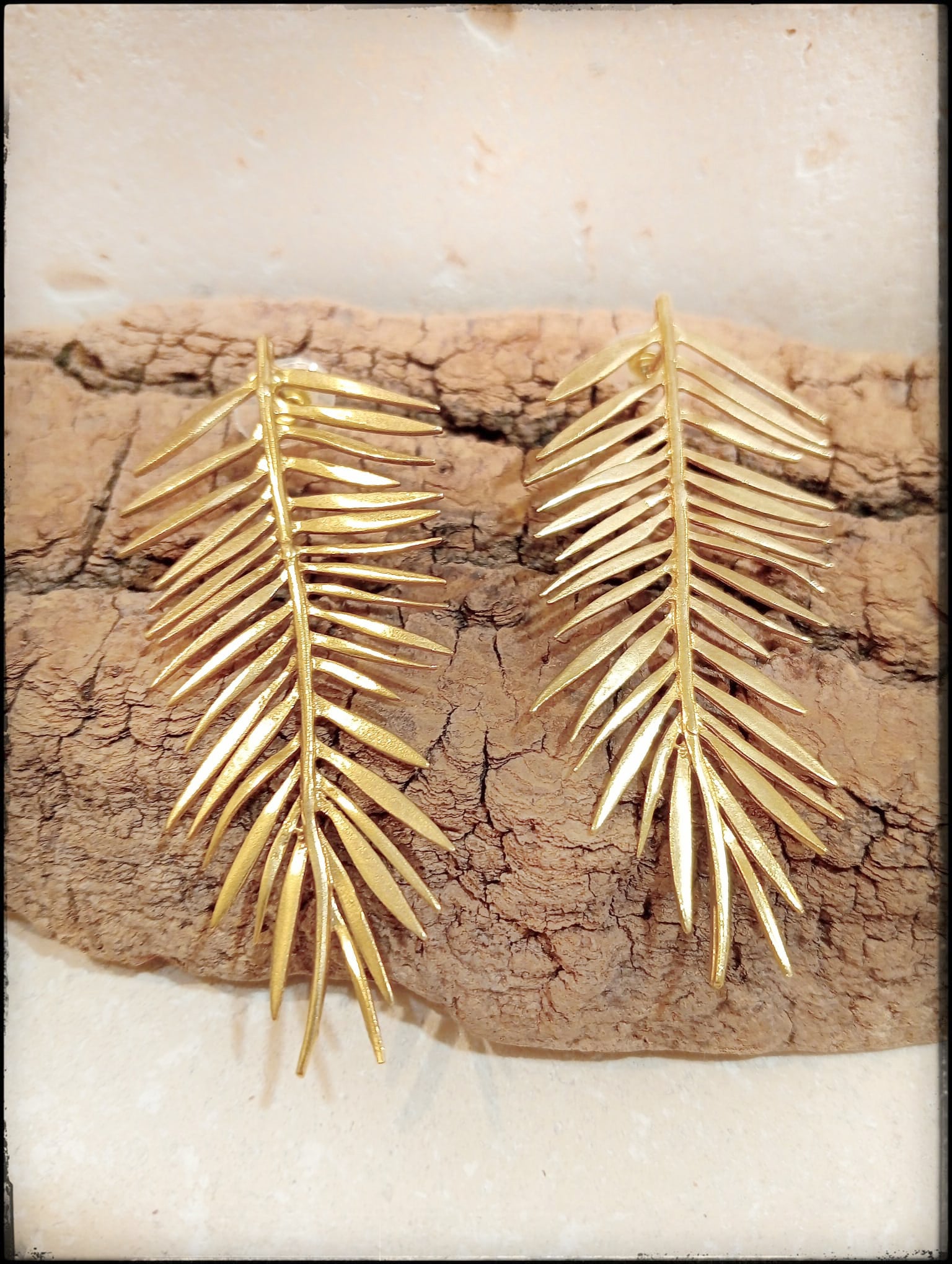 Boucles d'oreilles de fabrication artisanale, en laiton et plaqué or 24k,