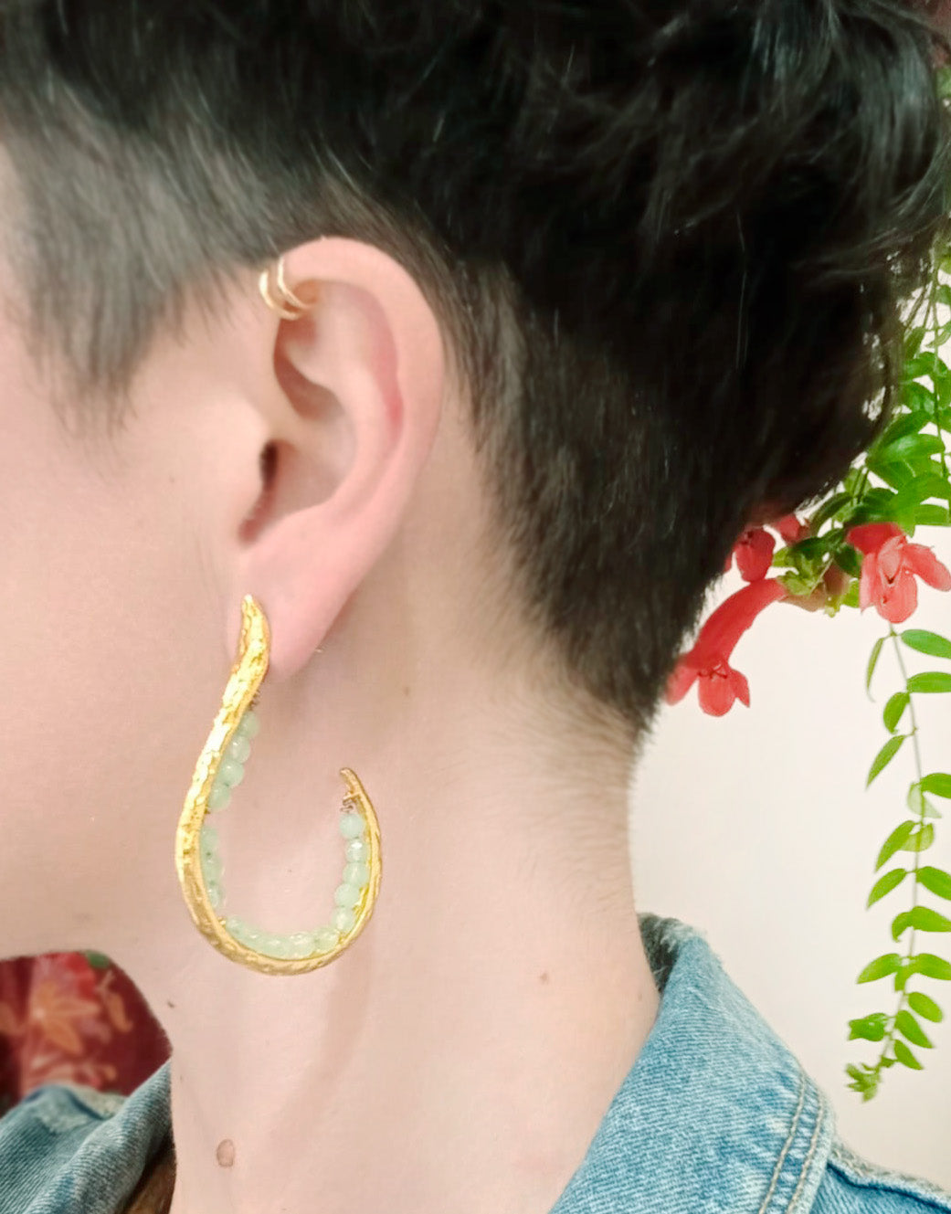 Boucles d'oreilles de fabrication artisanale, en laiton et plaqué or 24k