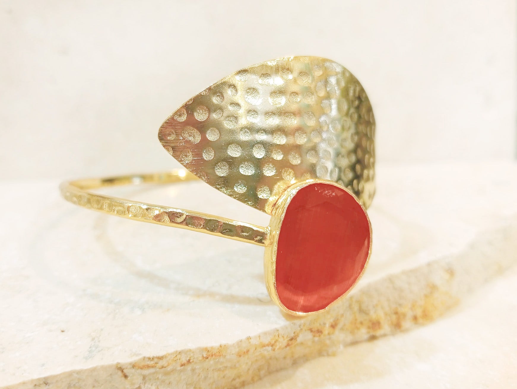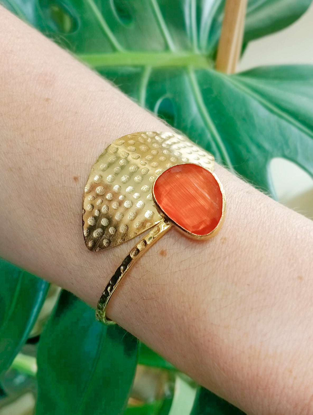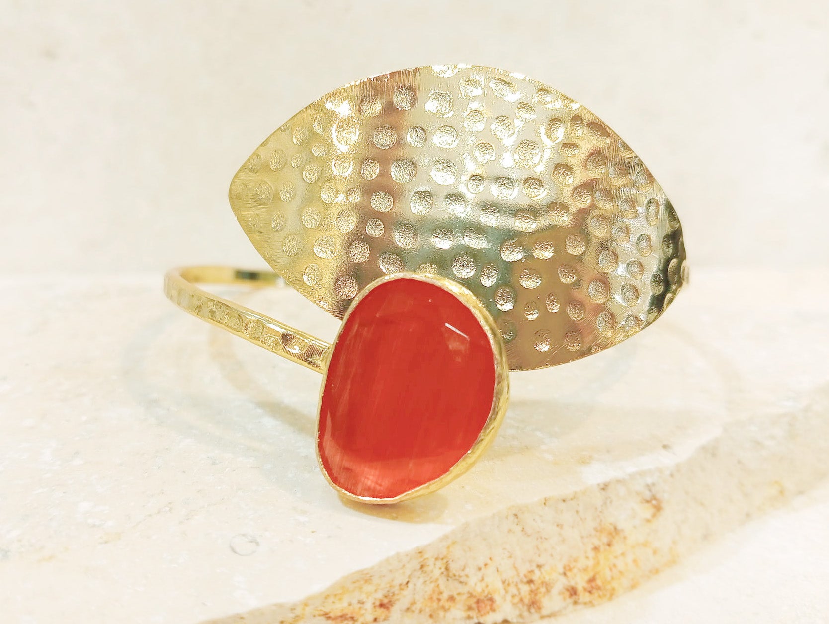Bracelet de fabrication artisanale, en laiton et plaqué or 24k,