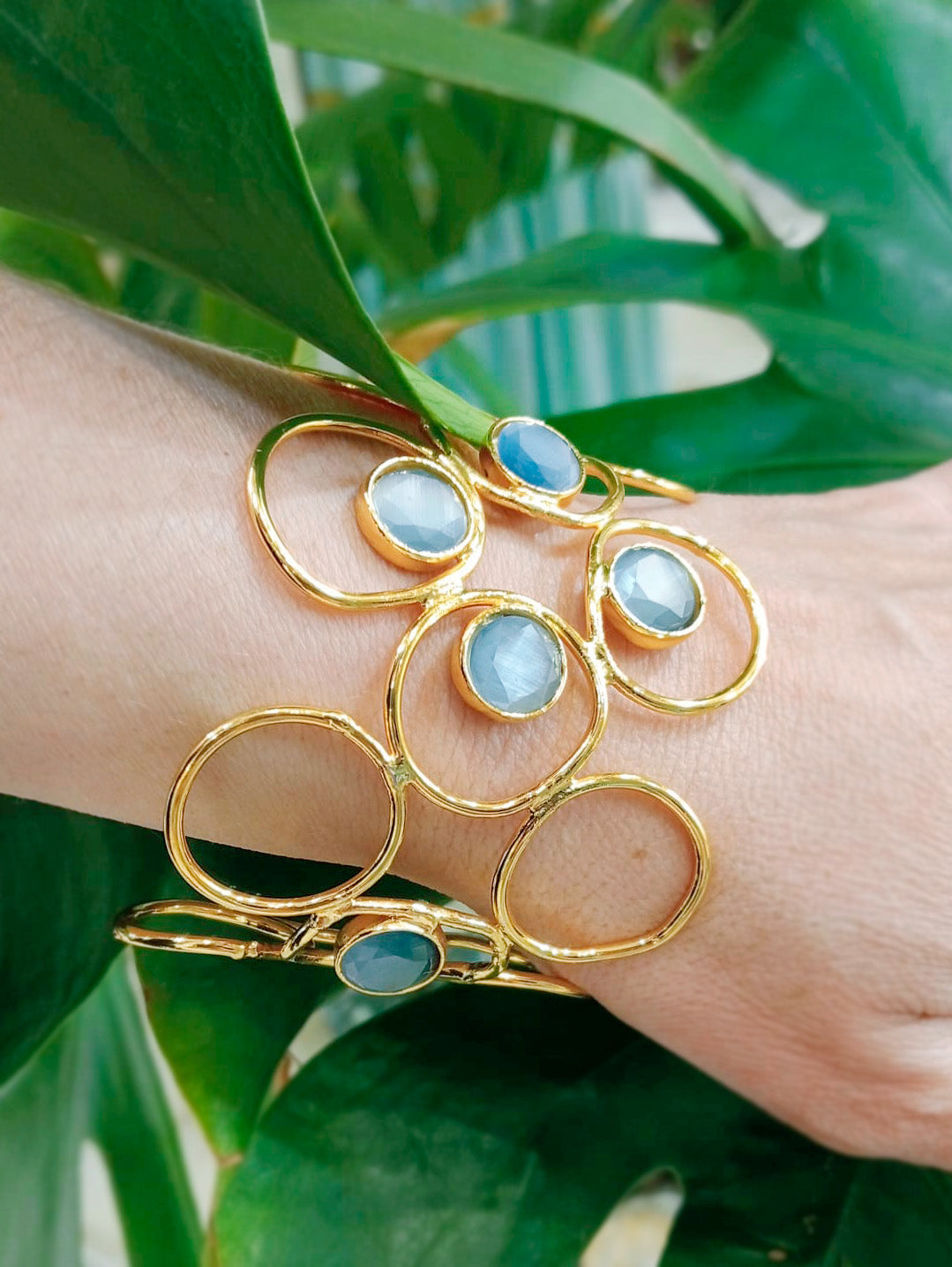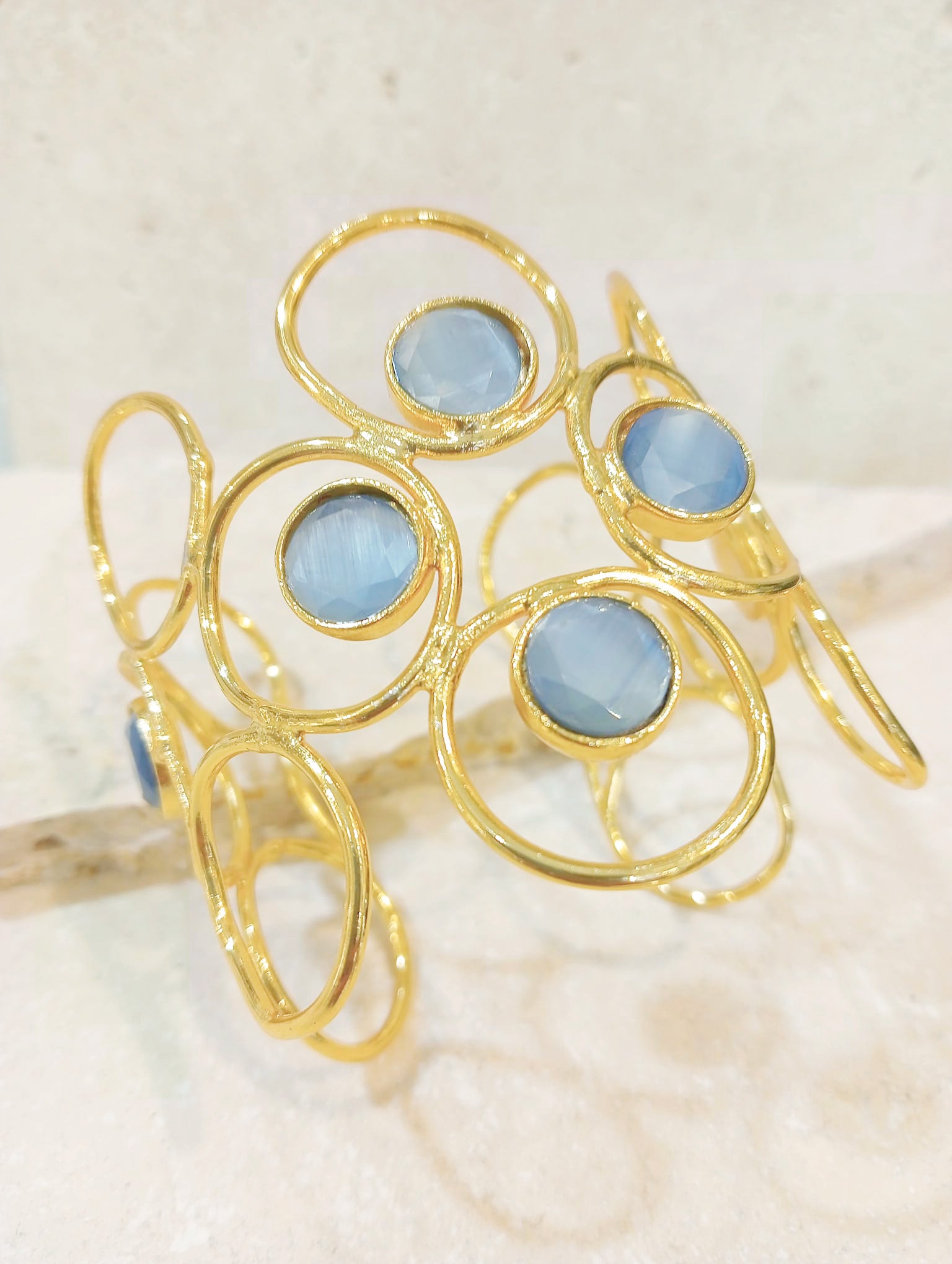 Bracelet manchette de fabrication artisanale en laiton et plaqué or 24k