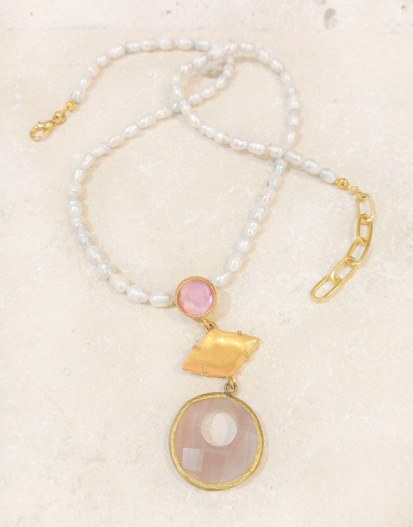 Collier de fabrication artisanale, en laiton et plaqué or 24k