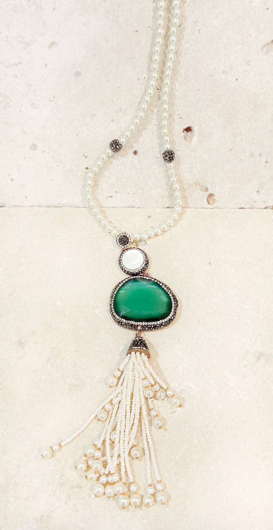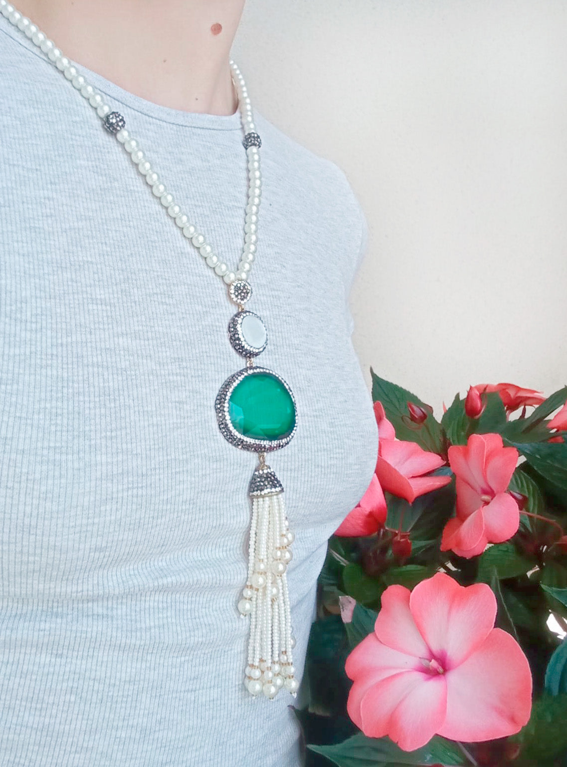 Sautoir de fabrication artisanale, en perles d'eau douce.